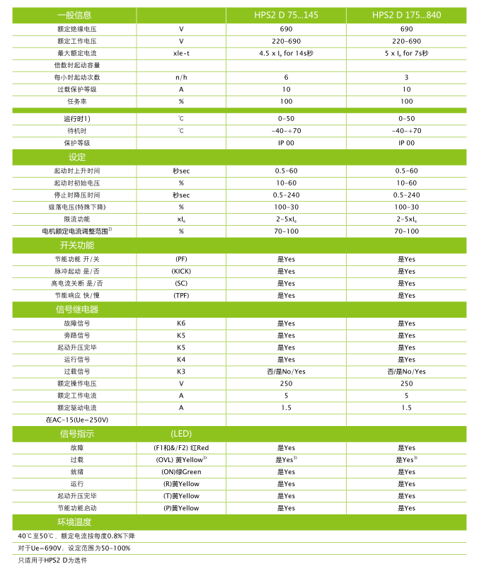HPS2D75...840HPS2DH30...720 軟起動器均有著堅固的金屬殼體設計,可分別適用于常規(guī)負載和重型負載的各種應用場合它結構牢固緊湊,安裝方便快捷。所有參數(shù)和功能選項均通過前面板上的調節(jié)電位器和功能切換開關來設定和選擇。直觀清晰,各工作階段和狀態(tài)及故障均有相應LED 指示讓用戶一目了然。特設節(jié)能功能,當電機運行在空載或輕載時自動降低負載電壓,