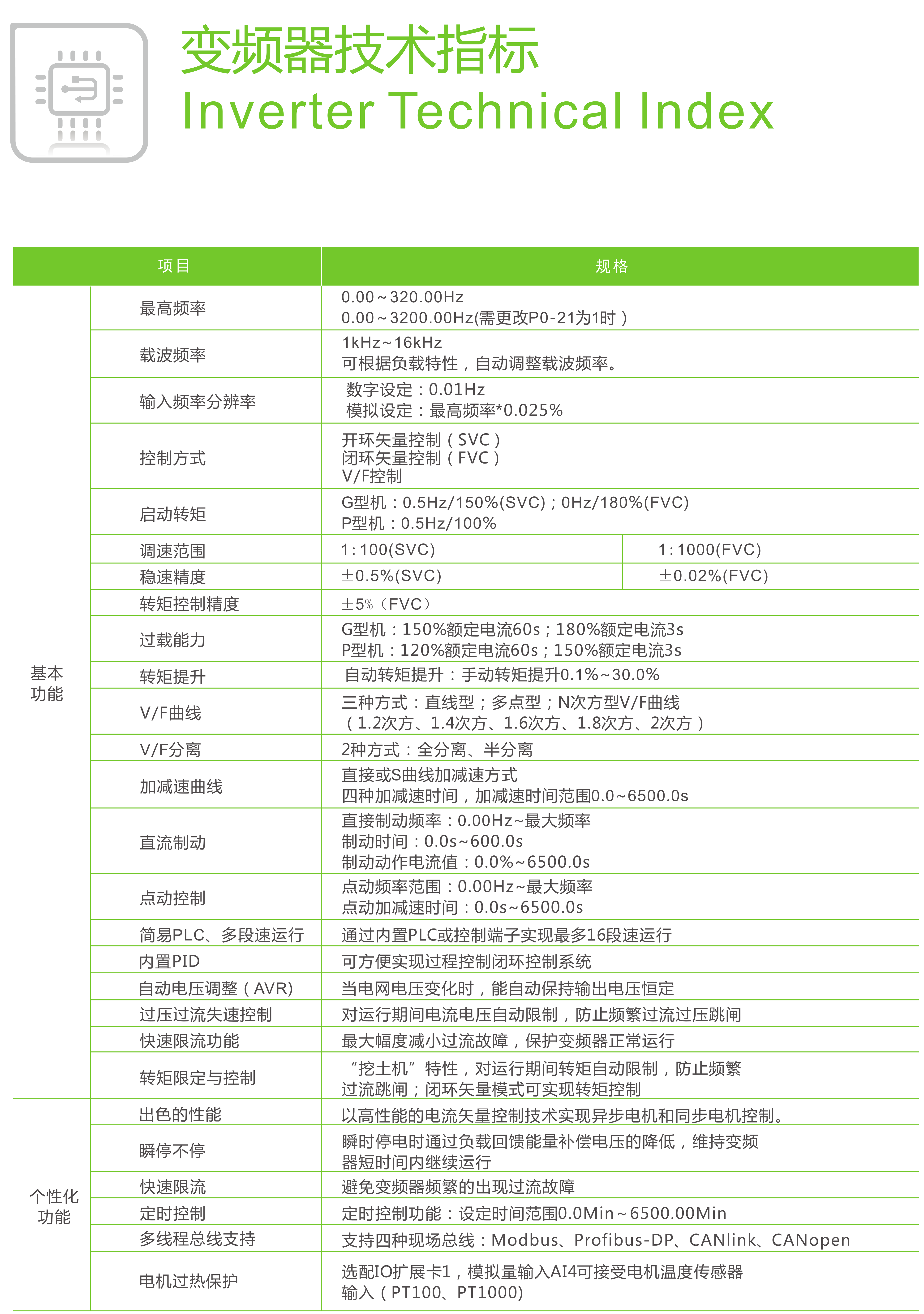 HPVFG系列是適用于工業(yè)工程和商業(yè)工程領域內(nèi)的高品質(zhì)系列產(chǎn)品,通過獨特的電流矢量控制,對電機有著極佳的控制特性,適合各種機械傳動類負載。書本型結(jié)構(gòu)設計非常適合柜內(nèi)多臺安裝。中文顯示操作界面,可以方便迅速的進行安裝連接和調(diào)試,全系列產(chǎn)品已通過CE電磁兼容認證。